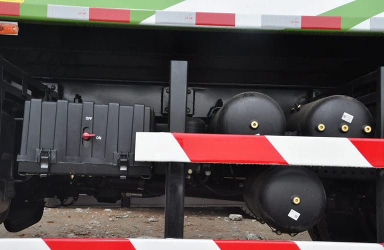 Its reinforced 850×300 (8+7) mm chassis, combined with a 7.5-ton MAN front axle and 16-ton dual-stage rear axle, guarantees stability and strength for long-term reliability. The 5.6-meter cargo bed is designed for rapid rear unloading, with high-strength steel construction that resists wear and extends service life.